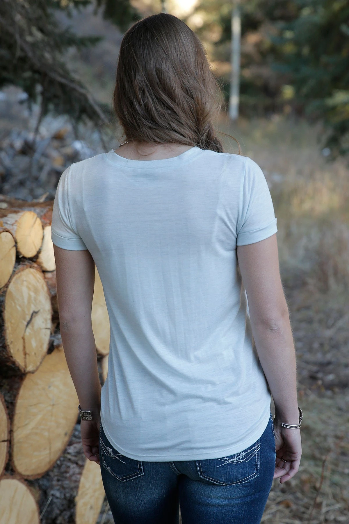 For an outdoorsy day of adventure, tuck this soft, comfy tee into blue jeans and layer it under a denim jacket. Show off your individuality with this ‘I Heart Rodeo’ screen printed tee.
